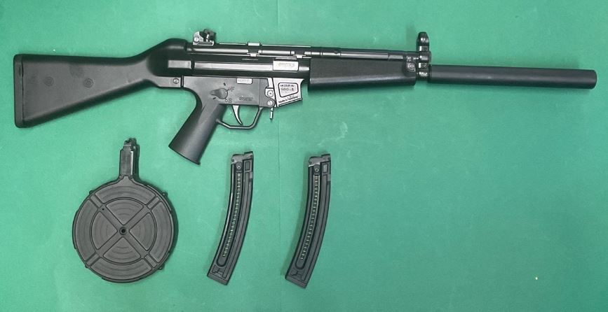 ICONIC GSG MP5 IN NICE CONDITION COMES WITH TWO 25 ROUND MAGS AND A 50 ROUND DRUM MAG.